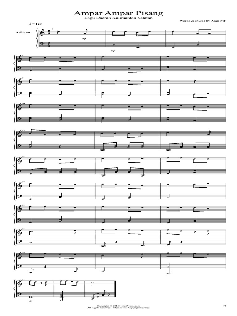 Not Angka Lagu Ampar Ampar Pisang Untuk Pianika Sebenarnya lagu ampar ampar pisang berasal dari daerah kalimantan selatan.