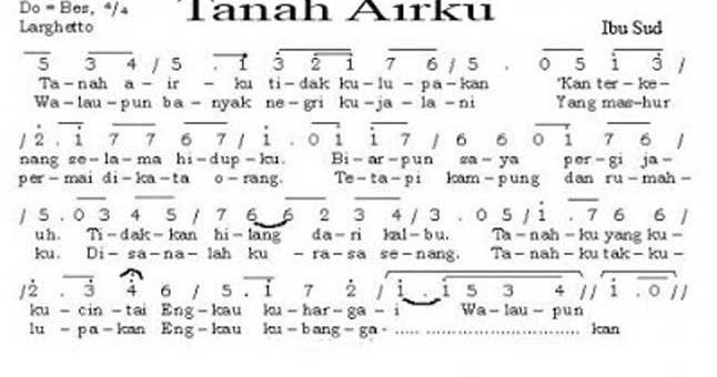 Lagu tanah airku, not lagu kebangsaan. Abis nyimak lagu wajib ini, langsung saja. Pasti kalian sudah bisa menebak lagu apa ? Judulnya tanah airku, salah satu lagu yang diciptakan oleh ibu saridjah niung atau yang dikenal dengan ibu soed. Not angka tanah airku ciptaan ibu sud. Not balok dan not angka lagu merupakan hal yang sangat sering dicari oleh para pemain musik.